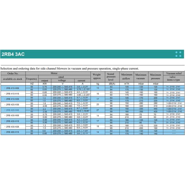 *Selection and ordering data for Side channel blowers in vaccum and pressure operation: